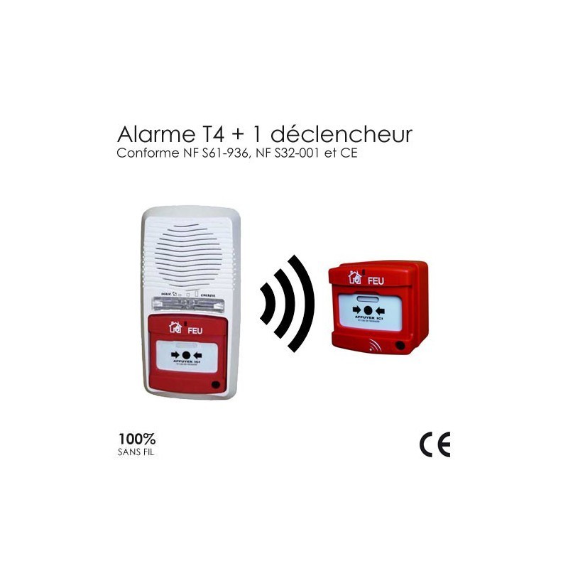 L'alarme type 4 NF radio à pile intègre une centrale avec déclencheur manuel, un flash et sirène intégrée afin de donner l'alerte en cas d'incendie. Elle pourra idéalement se coupler au déclencheur manuel radio afin de faire déclencher simultanément la centrale incendie distante puisqu'ils communiquent en fréquence radio.