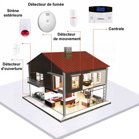 Ce Kit ALARME MAISON GSM complètement évolutif : Des détecteurs d'incendie, de gaz, boutons panique, bris de vitre, d'inondation peuvent venir optimiser votre protection.