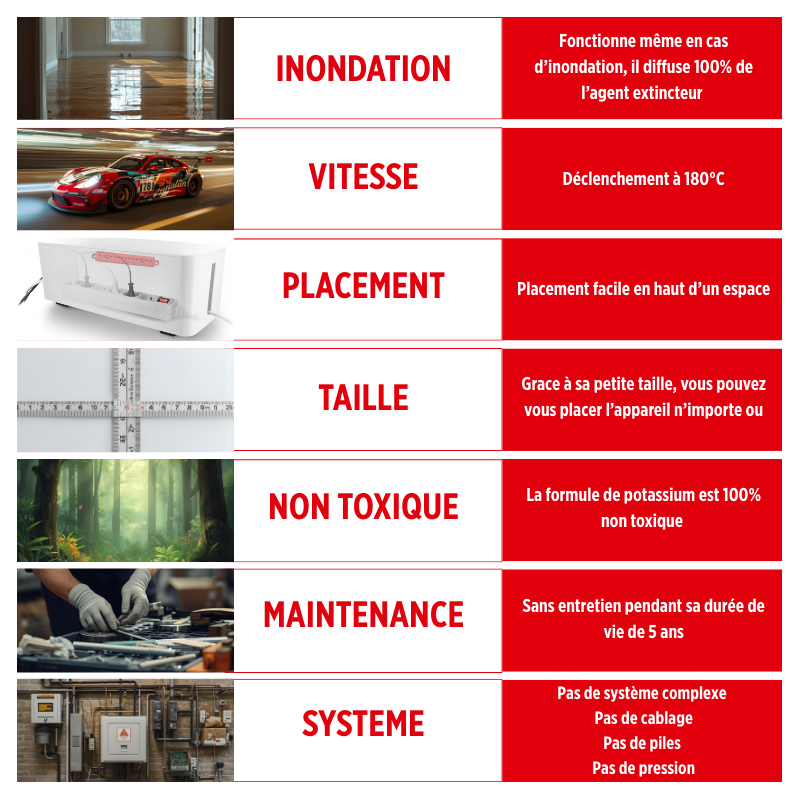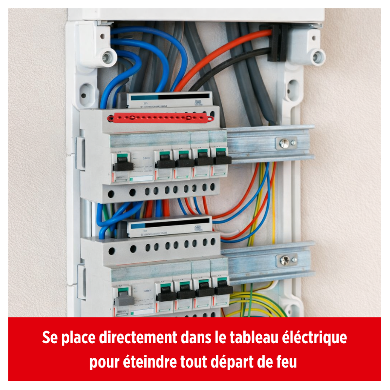 Mini dispositif, maxi protection. Détecte et éteint automatiquement les débuts d'incendie dans les espaces clos. Autonome, sans entretien.