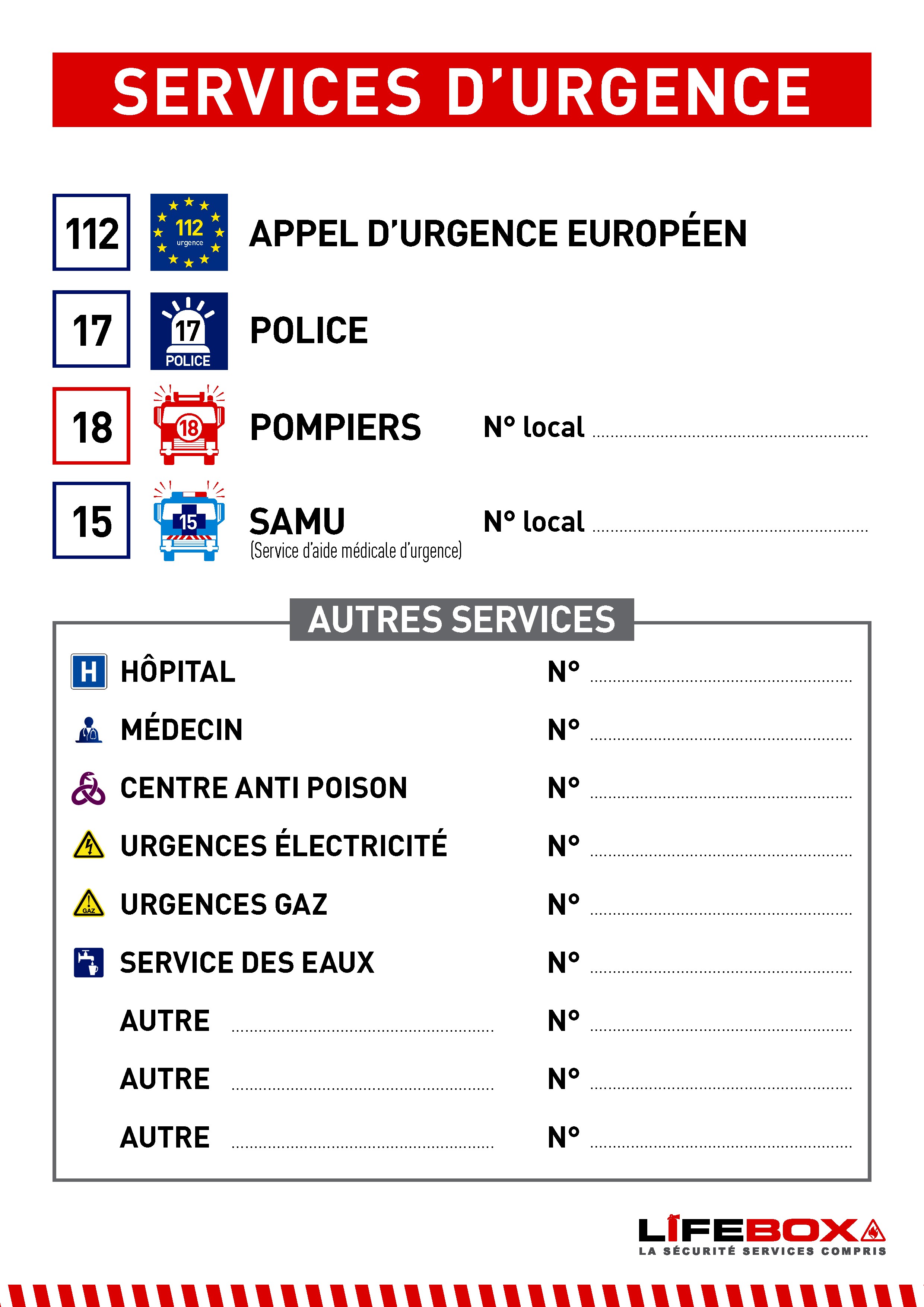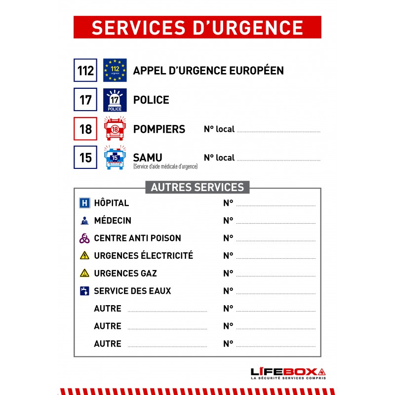 Panneau des numéros d'urgence Lifebox PVC 21x29,7 cm